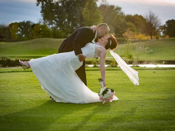 After the ceremony, guests will enjoy a cocktail hour in our clubhouse bar and on the patio while the newlyweds take an adventurous stroll on the course with their photographer, capturing private, stunning photos in the most picturesque spots of our 180-acre landscape. When you and your guests come back together for the reception, you’ll be treated to a hot plated meal, drinks of your choosing, and a staff dedicated to assisting with every detail—without ever interrupting the flow of your special day.